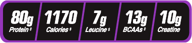 Neredeyse hiç kreatin içermeyen diğer önde gelen kilo aldırıcıların aksine MASS-TECH® gücü daha hızlı artırmak için klinik olarak doğrulanmış 10 gram kreatin içerir.