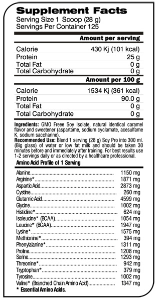 %90 protein oranina sahip Soy Pro, 1 serviste (28gr) 25gram protein içerir.
